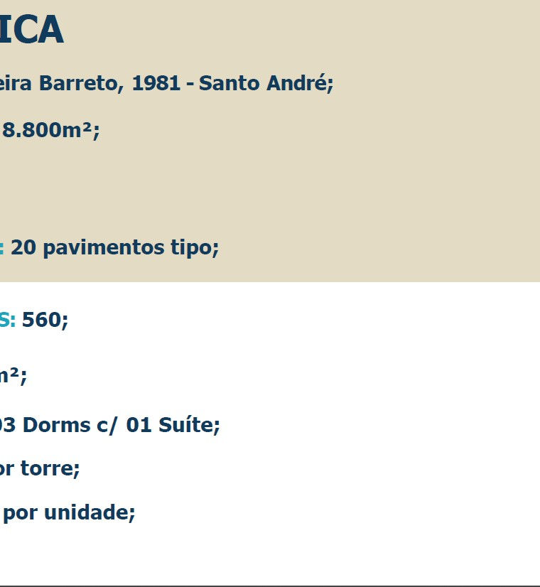 No bairro mais cobiçado de Santo André chega um empreendimento que se destaca por seus diferenciais, trazendo para Santo André o conceito de STUDIO - imóvel compacto, cercado por todo tipo de recursos para seu total conforto e tranquilidade.